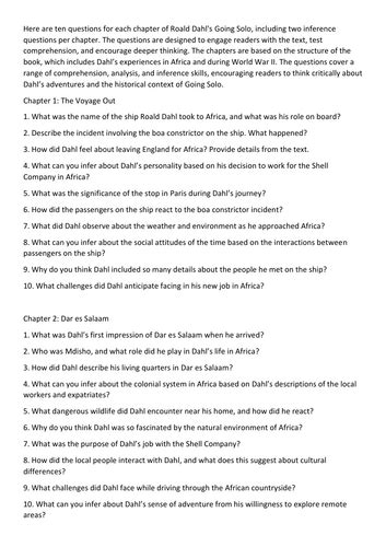 Read Going Solo Roald Dahl Comprehension Questions Paperback